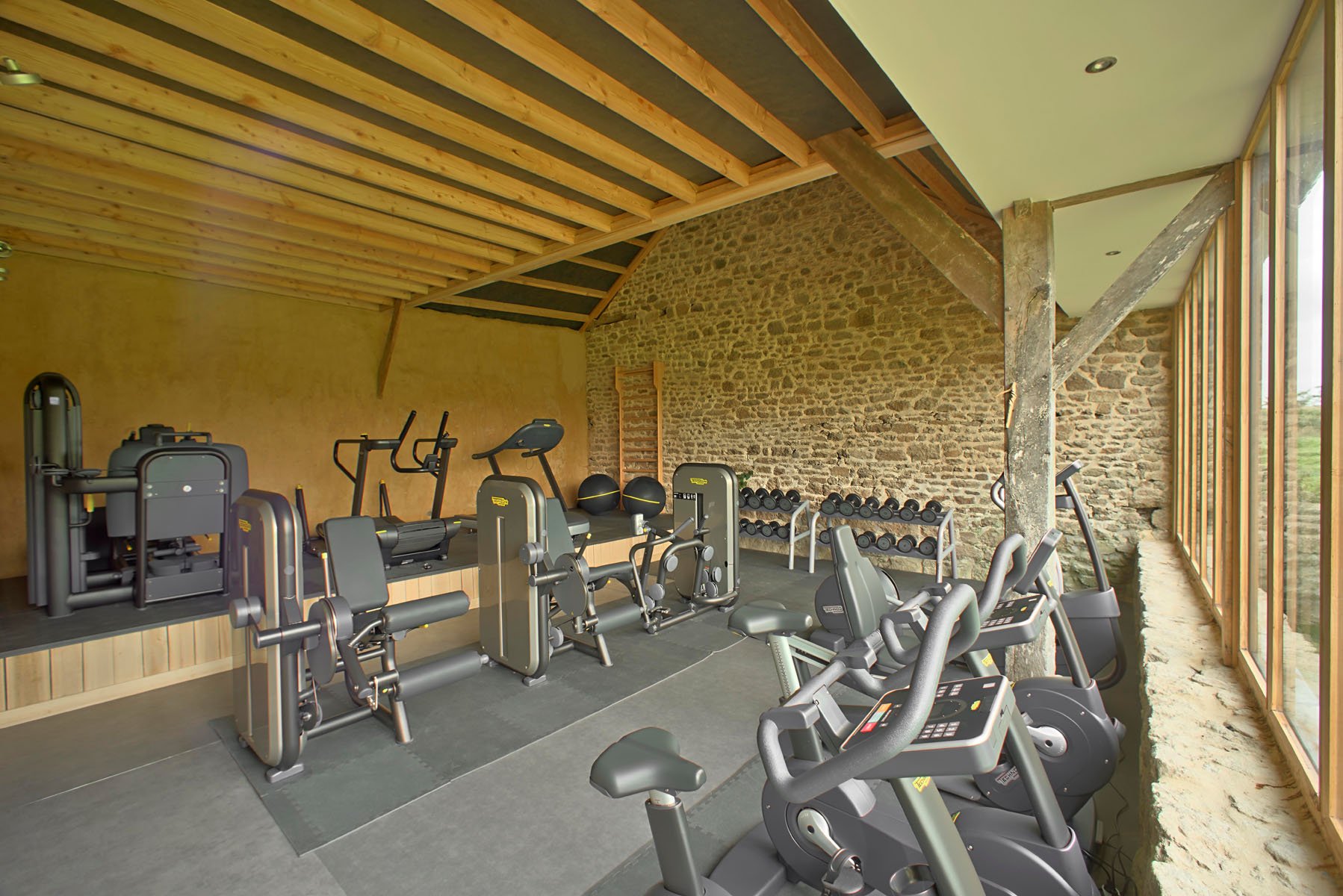 Les machines de musculation haut de gamme vous feront profiter et vous détendre au maximum, tout en ayant une vue imprenable sur le Château et le parcours de golf. Son espace chaleureux et moderne mélange des matériaux naturels tels que le bois, la pierre et la terre.