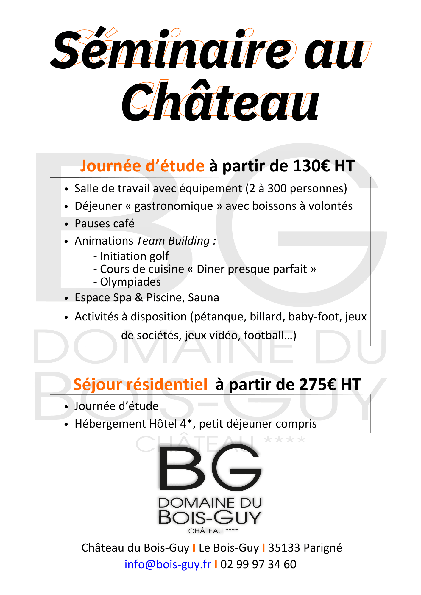 Séjour, travail, détente, le château-hôtel 4* du Bois-Guy a conçu une formule tout compris, comprenant comme
